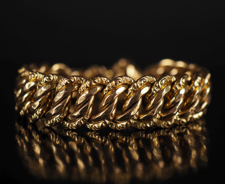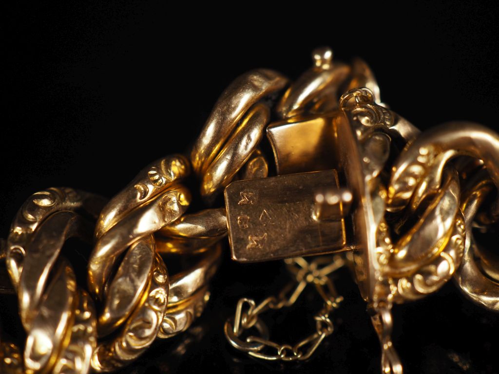 Gourmette en or 750, chainette de sécurité Poids : 29 g