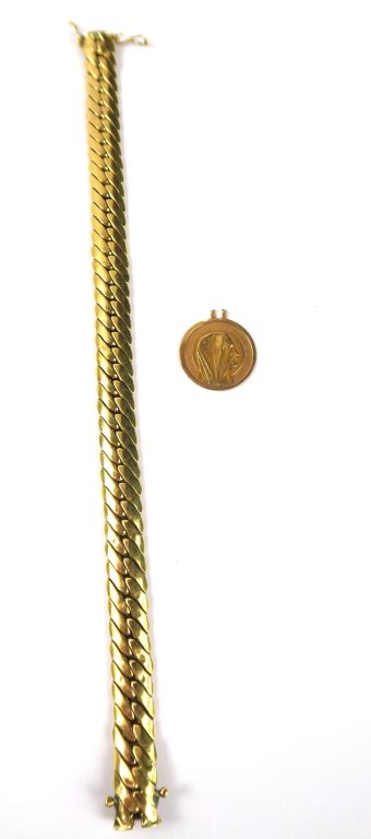 Gourmette et médaille accidentée en or. Poids : 13,7 g