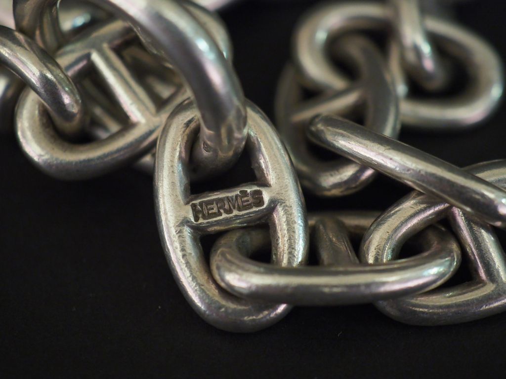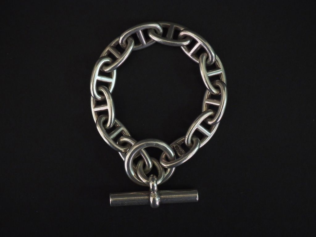 Lot de HERMES Bracelet articulé en argent, maille marine. Signé. Long. 23,5 au prix de 400 à 600 € en vente aux enchères par l'hôtel des ventes Primardeco