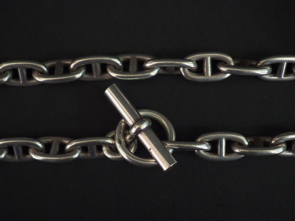 HERMES Collier articulé en argent, maille marine. Signé. Long. 44,5 cm Poids.