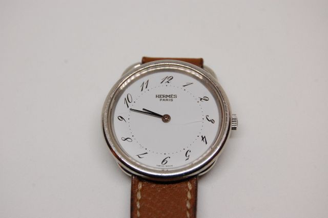 Lot de HERMES. Montre de dame. Avec son bracelet en cuir au prix de 600 à 800 € en vente aux enchères par l'hôtel des ventes Primardeco