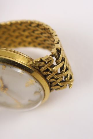 JAEGER LECOULTRE. Montre de dame, bracelet et cadran en or. Poids tel : 29,7 g (bracelet accidenté)