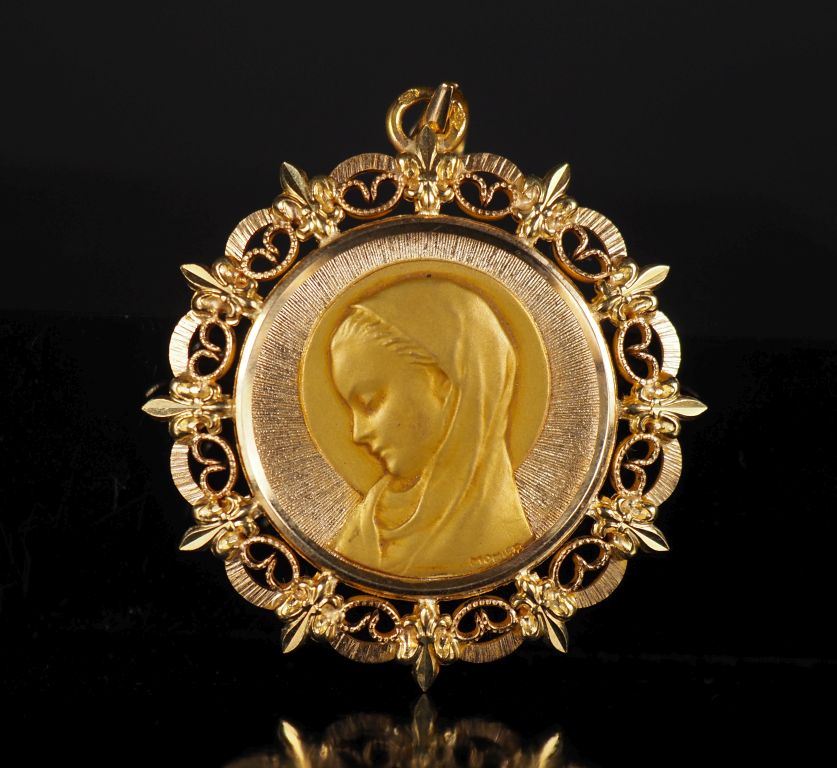 Médaille de baptême en or 750 "profil de Sainte Vierge" Poids : 6,55 g
