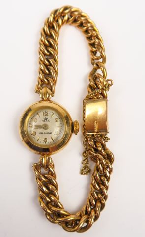 Montre de dame, bracelet et cadran en or. Poids tel : 13,9 g
