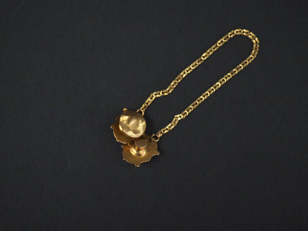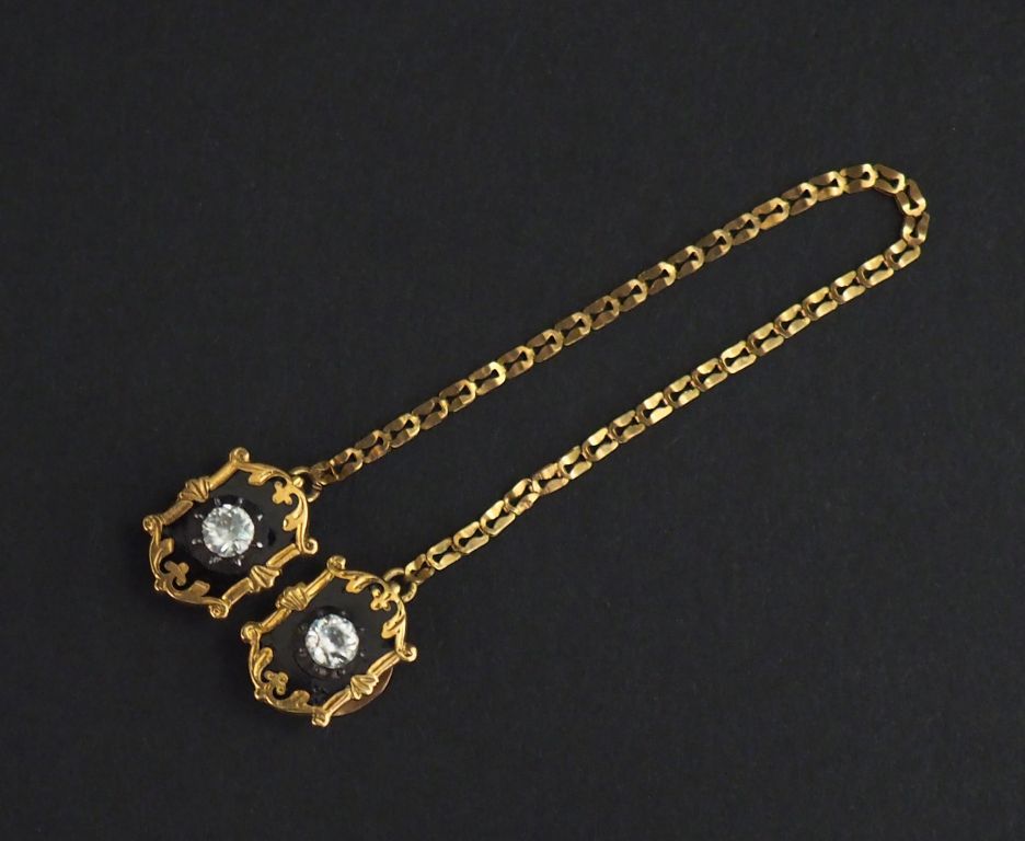 Paire de boutons de col Napoléon III en or jaune et émail noir, sertis en leur centre d'une pierre à l'imitation du diamant. Poids tel. 2,33 g