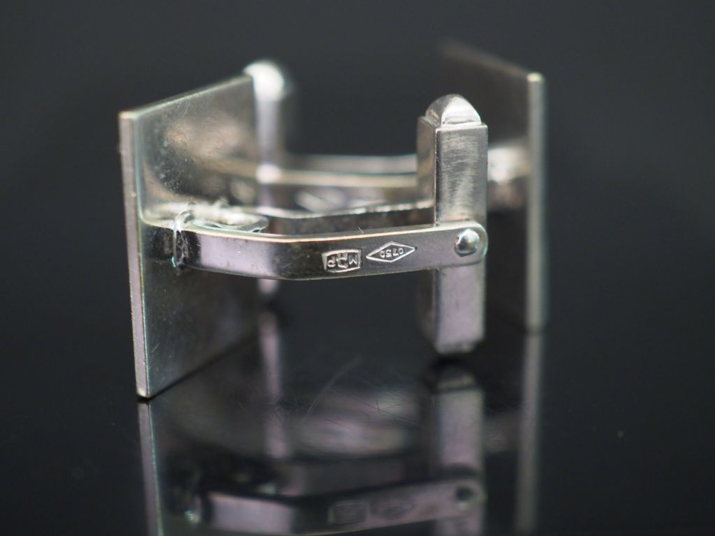 Paire de boutons de manchette en or blanc ornés d'un carré de lapis lazzuli entourant un diamant, porte un poinçon M.P. Poids tel : 16,80 g