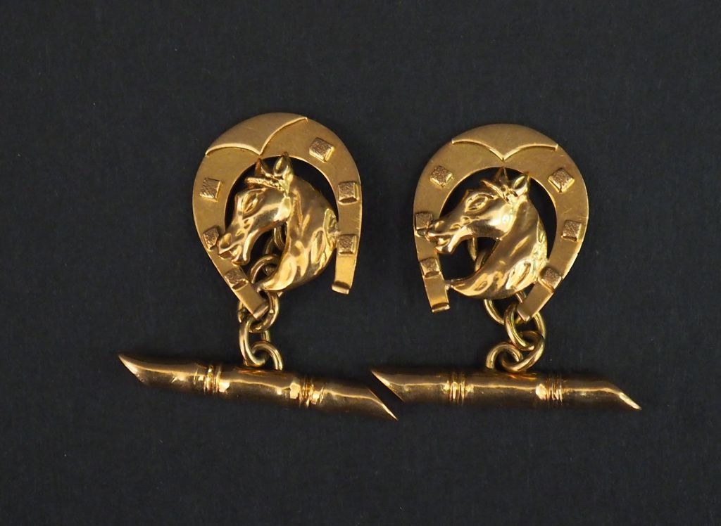 Paire de boutons de manchettes en or jaune, à décor de tête de cheval de profil. Poids. 5,06 g