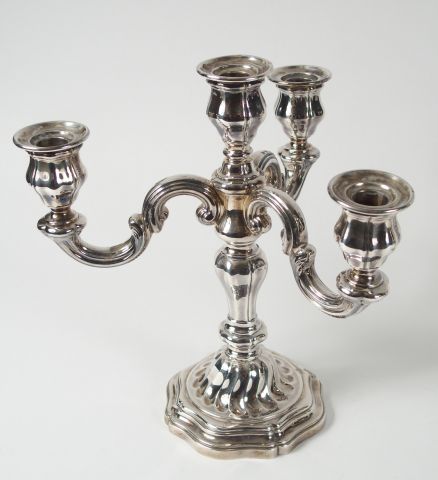 Paire de chandeliers de style rocaille en argent, poinçon Minerve, éclairant à 4 lumières. M.O : Tétard Frères Poids tel d'un chandelier : 1126 gr