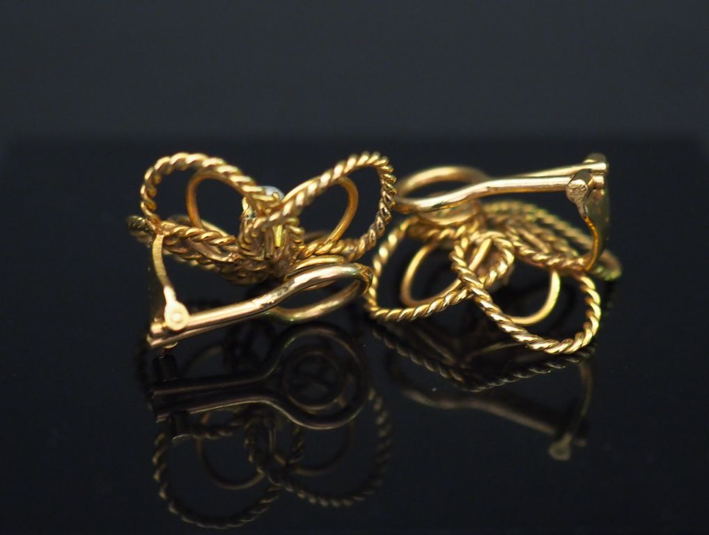 Paire de clips d’oreilles en or jaune, en forme de fleurs, serties en leur centre d’une perle. H. 2 cm Poids tel. 8,65 g (à charge de contrôle)