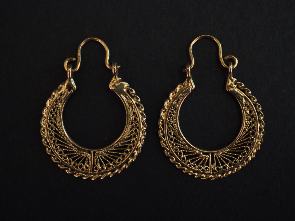 Paire de créoles en or jaune, à décor ajouré et filigrané. H. totale : 3 cm Poids. 4,85 g