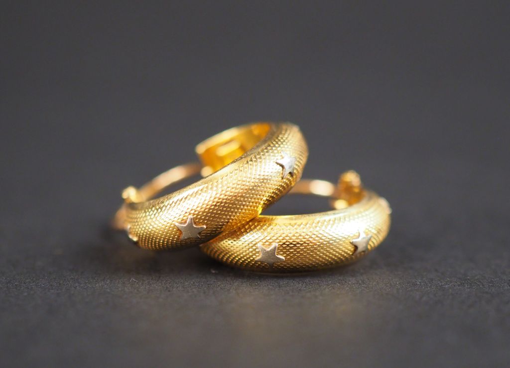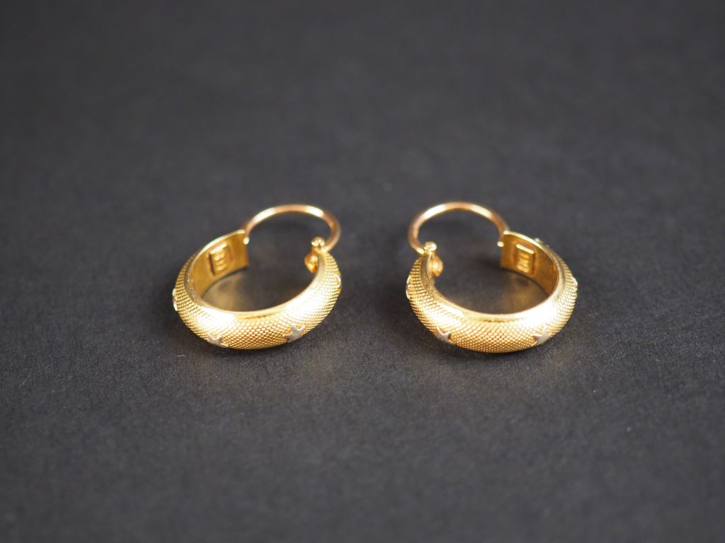 Paire de créoles en or jaune, à décor d'étoiles appliquées en or blanc. Poids. 4,45 g