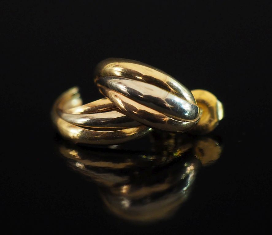 Paire de demi créoles trois tons d'or 750. H. 1,5 cm Poids. 1,67 g ...