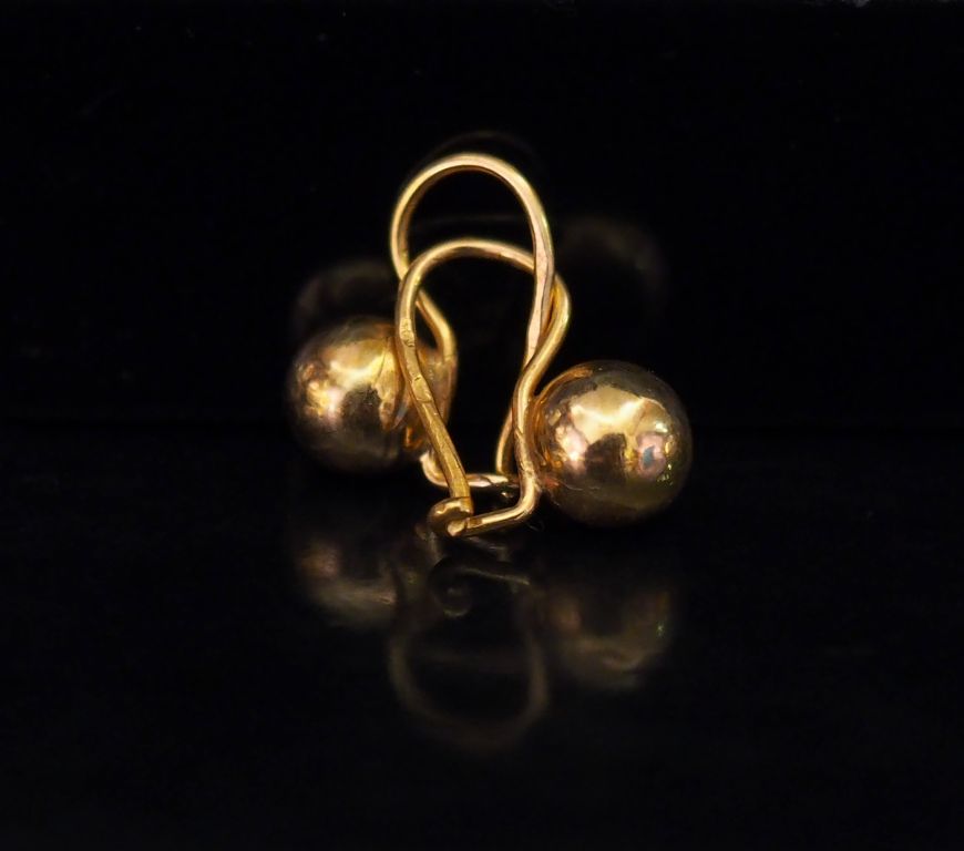 Paire de perce-oreilles en or jaune, à décor d'une boule. H. 1,5 cm ...