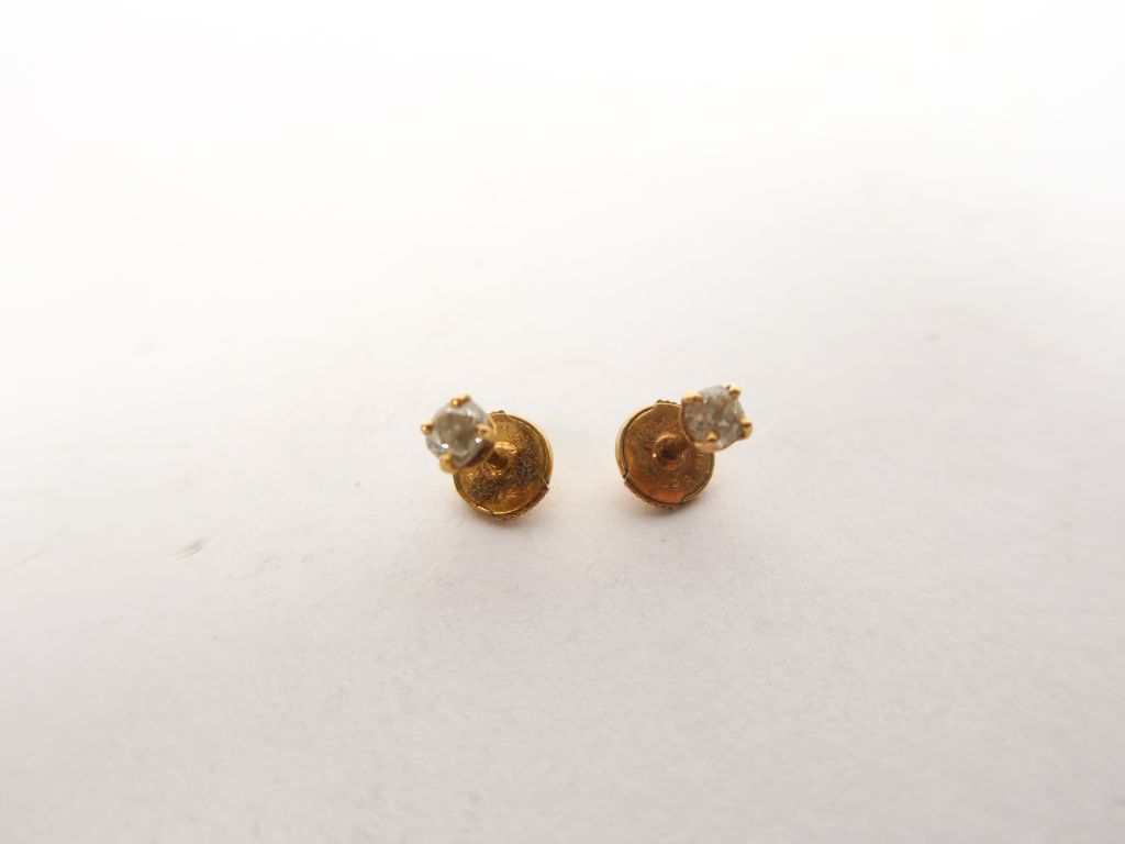 Lot de Paire de perce-oreilles en or jaune, ornés d'un petit diamant. Poids au prix de 100 à 150 € en vente aux enchères par l'hôtel des ventes Primardeco