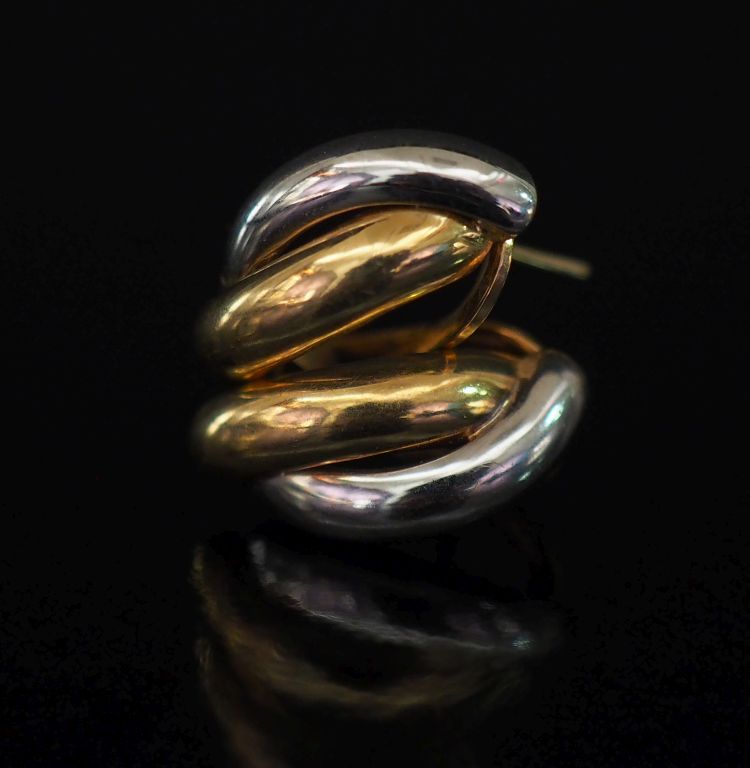 Lot de Paire de perces oreilles deux tons d'or, à décor d'entrelac. H. 1,7 c au prix de 90 à 110 € en vente aux enchères par l'hôtel des ventes Primardeco