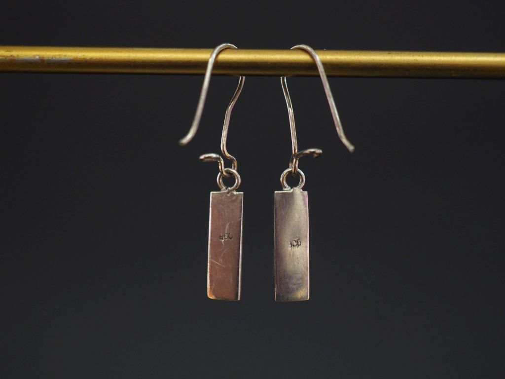 Paire de perces oreilles en argent étranger 850 et émail bleu. H. de la pendeloque : 1,5 cm Poids tel. 1,97 g