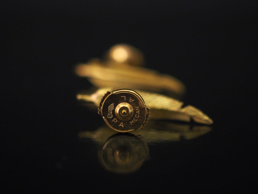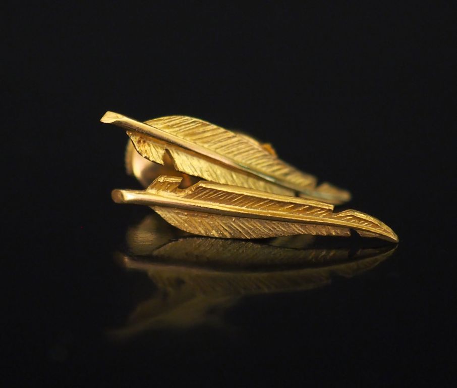 Paire de perces oreilles en or jaune, en forme de plume. Fermoir en or jaune, système Alpa. Long. 2,4 cm Poids. 2,52 g