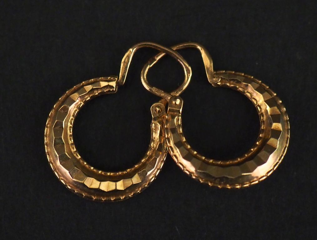 Paire de petites créoles en or jaune 750, à décor facetté. Diam. 1,4 cm Poids. 1,79 g