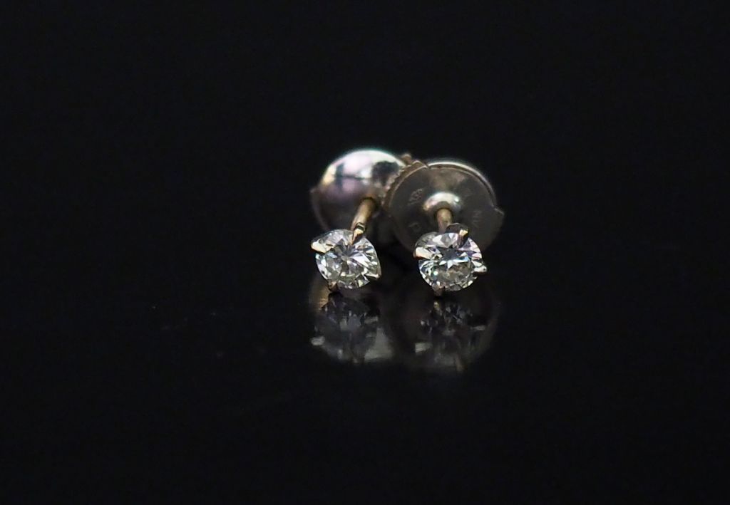 Lot de Paire de puces d’oreilles en or blanc, serties d’un diamant. Système au prix de 200 à 300 € en vente aux enchères par l'hôtel des ventes Primardeco