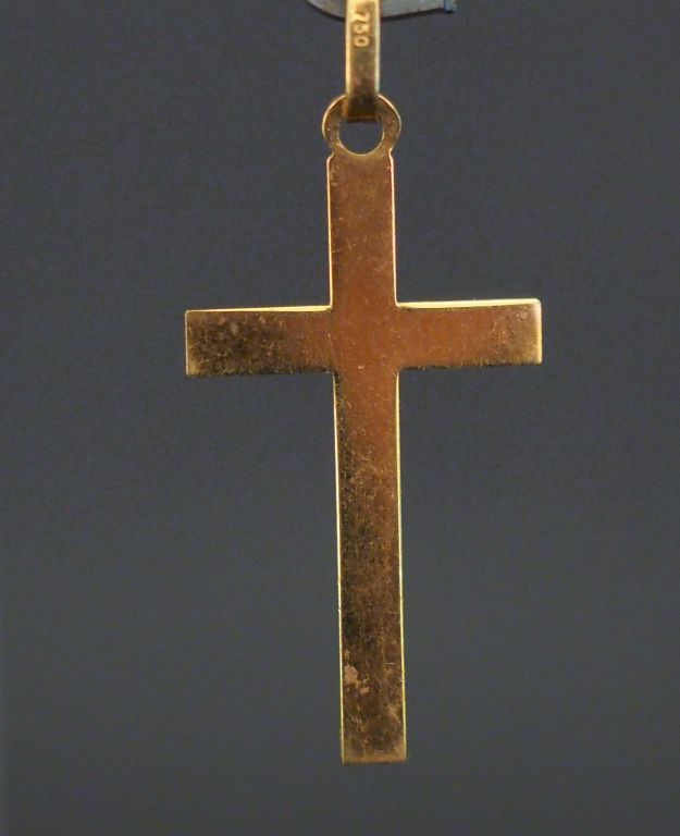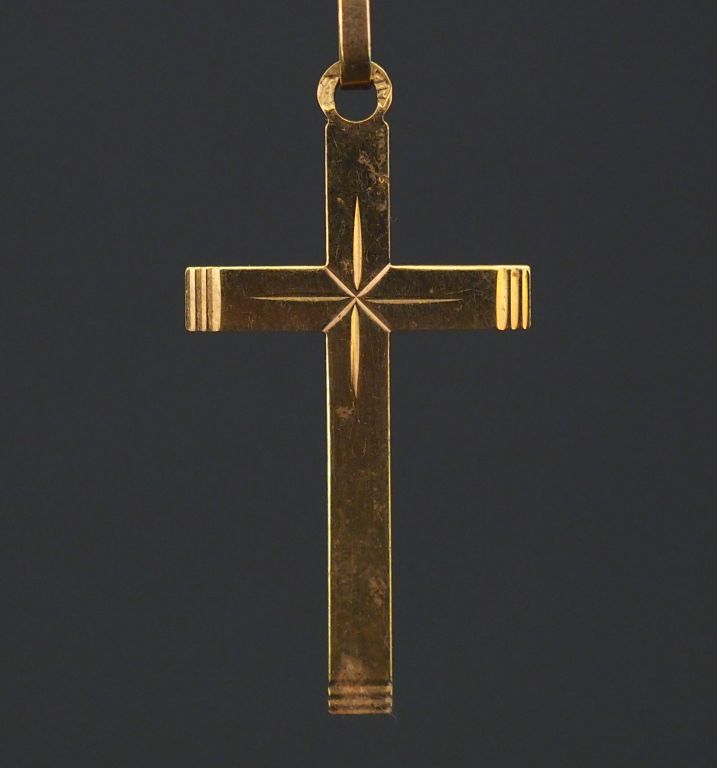 Pendentif en forme de croix en or jaune, à décor gravé d'une étoile en son centre. 3 x 1,6 cm Poids. 1,04 g