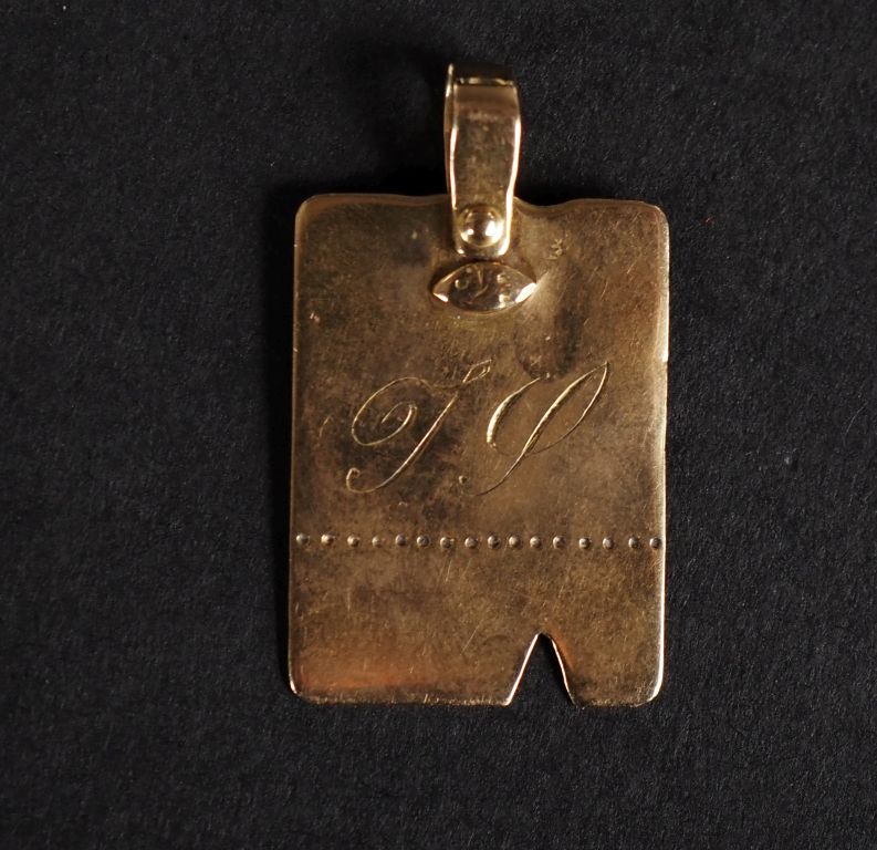 Pendentif en or jaune 750, à décor de monogramme. 2,3 x 1,7 cm Poids. 2,76 g