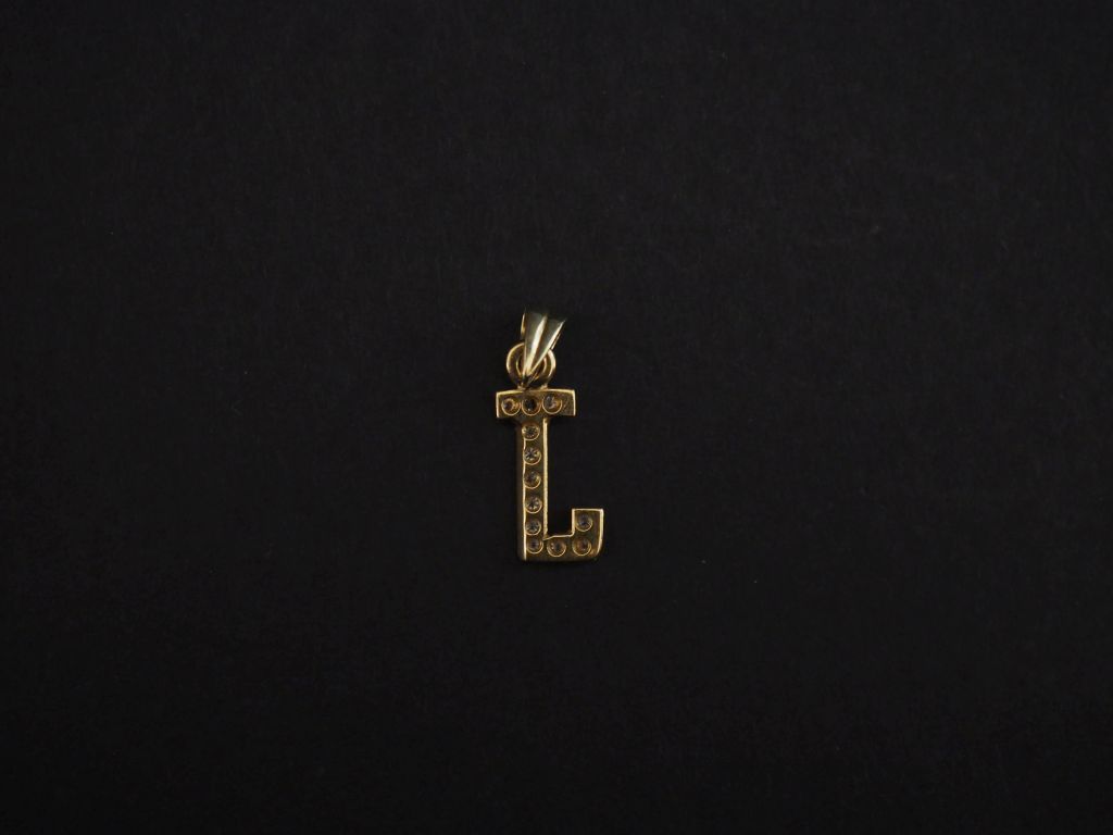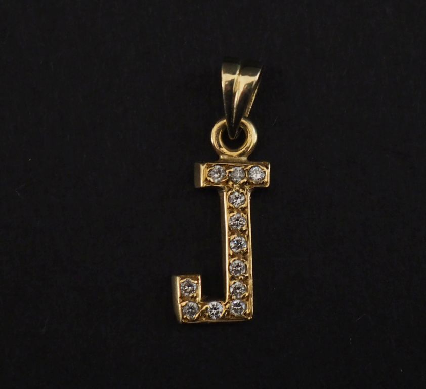 Pendentif en or jaune 750, en forme de "J" et serti de petits diamants. 1,5 x 0,8 cm Poids tel. 1,23 g