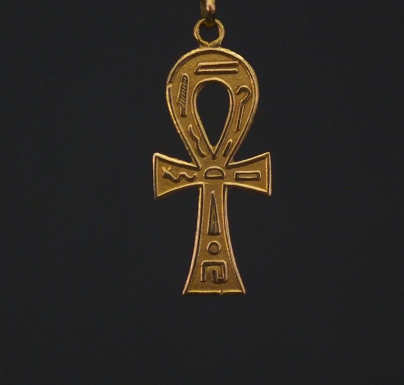 Lot de Pendentif en or jaune de style égyptien, à décor de hiéroglyphes. 2,6 au prix de 50 à 60 € en vente aux enchères par l'hôtel des ventes Primardeco