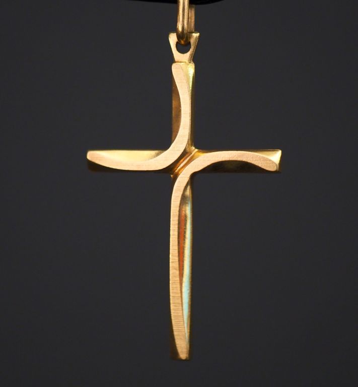 Pendentif en or jaune en forme de croix de forme stylisée. 3,6 x 2,4 ...