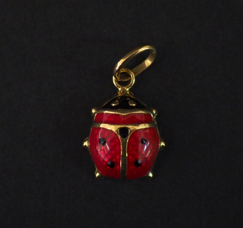Pendentif en or jaune et émail noir et rouge en forme de coccinelle. H. 1,3 cm (sans la bélière) Poids tel. 0,88 g