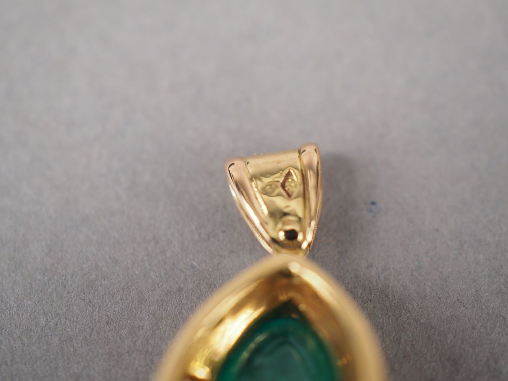 Lot de Pendentif en or jaune, orné d'une émeraude en cabochon et de neuf peti au prix de 200 à 300 € en vente aux enchères par l'hôtel des ventes Primardeco