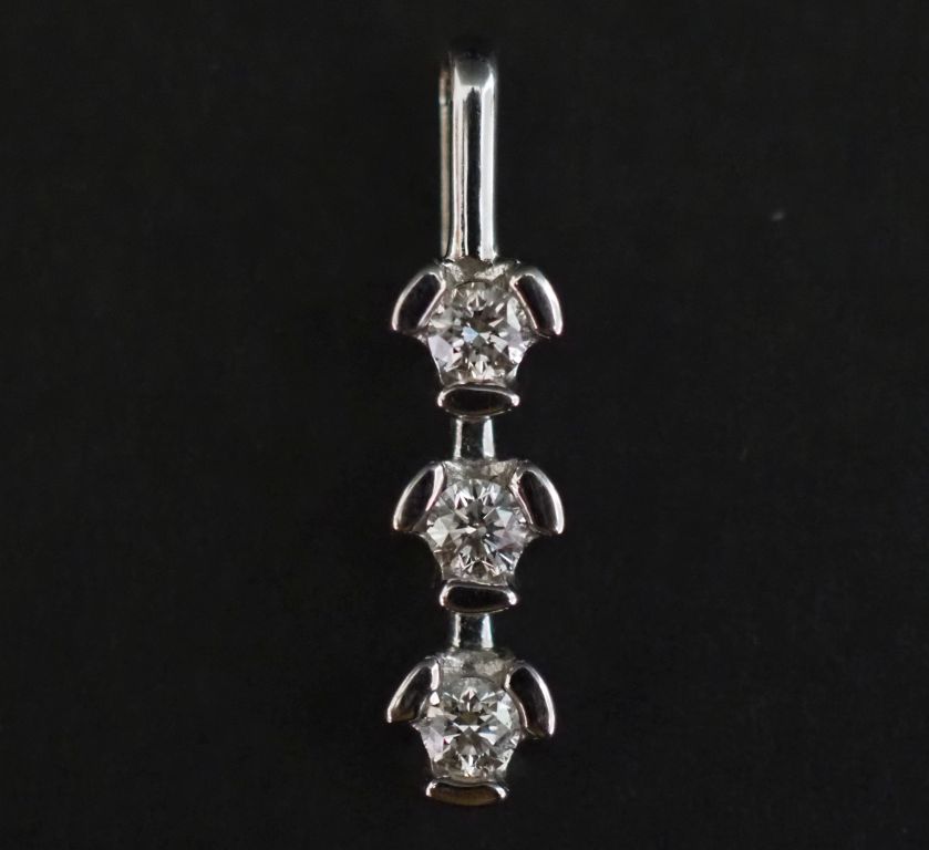 Pendentif moderne en or blanc 750, serti de trois diamants de 0,05 ct environ. H. avec la bélière : 2,3 cm Poids tel. 1,49 g