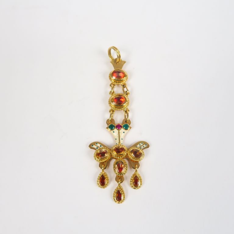 Pendentif Saint-Esprit en or jaune, émail et pierres de couleur. Poids tel. 10,19 g