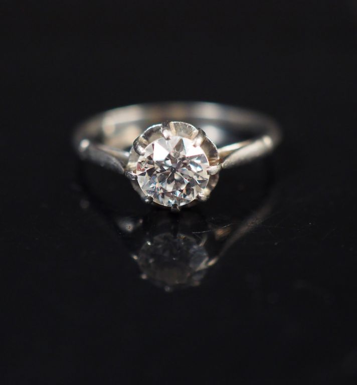Petit bague en or blanc sertie d'un diamant taille ancienne de 0,5 ct environ. TDD. 47 Poids tel. 2,32 g