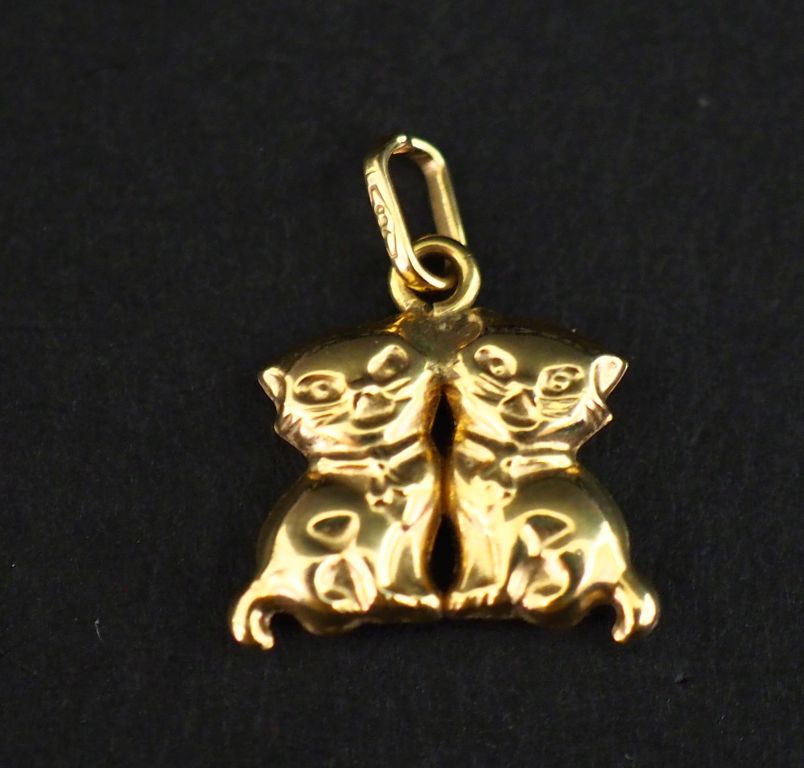 Petit pendentif en or jaune 750, à décor de deux chatons. 1,2 x 1,4 cm Poids. 0,86 g