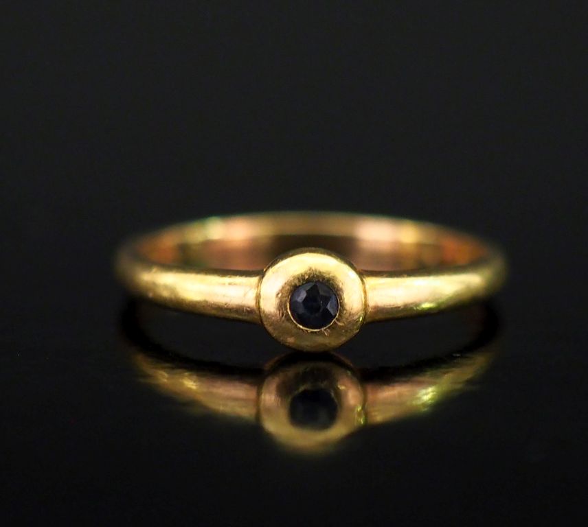 Petite bague en or jaune 750, ornée en son centre d'une pierre noire sertie clos. TDD. 47 1/2 Poids tel. 1,28 g