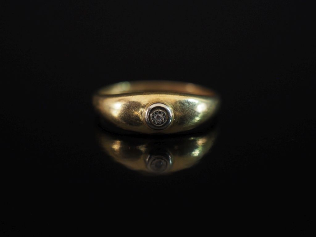 Petite bague jonc en or jaune 750, ornée en son centre d'un petit éclat de diamant serti clos. TDD. 55 Poids tel. 2,19 g