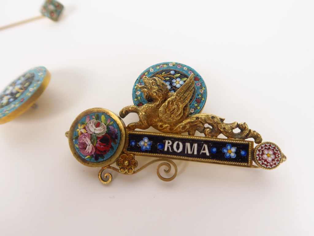 Lot de Quatre broches en micromosaique. au prix de 50 à 80 € en vente aux enchères par l'hôtel des ventes Primardeco