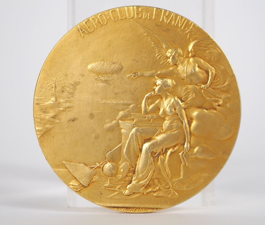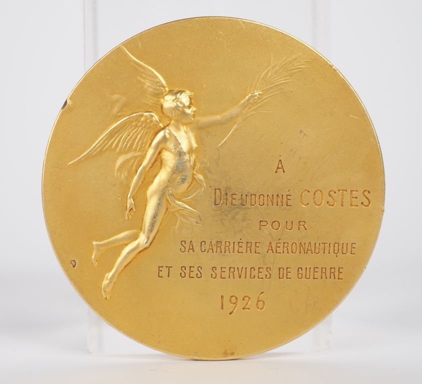 R. MARCUS. Médaille en or "Aéro Club de France à Dieudonné Costes pour sa carrière aéronautique et ses services de guerre. 1926". Poids : 94,8 g (un choc léger sur la tranche)
