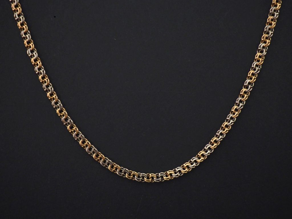 Sautoir deux tons d'or, maille plate tressée. Long. 69 cm Poids. 19,7...