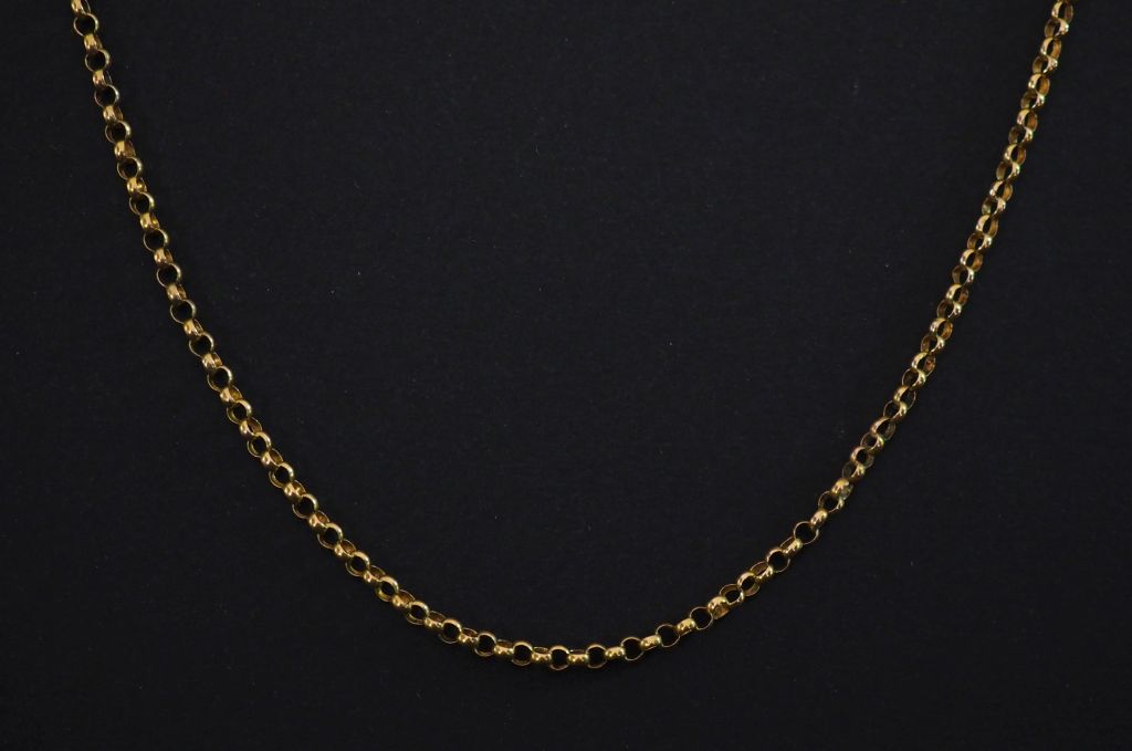 Sautoir en or jaune 750, maille forçat ronde. Joli fermoir rectangulaire, à décor gravé. Long. 90 cm Poids. 7,60 g