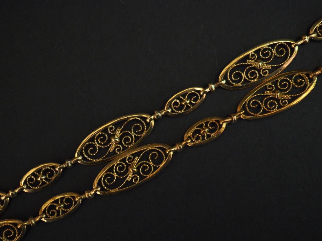 Sautoir en or jaune, composé de maillons ovales ajourés et filigranés. Long. 72,5 cm Poids. 45,30 g