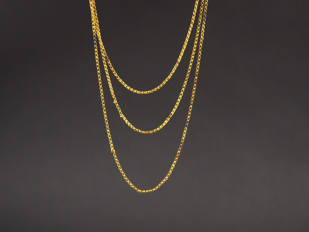 Sautoir triple rangs disposés en chute en or jaune. Poids. 23,74 g (soudures anciennes)