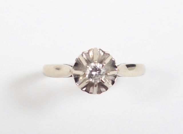 Solitaire monture or blanc orné d’un diamant taille moderne de 0,12ct environ. TDD 54 Poids tel : 3,1gr