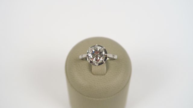 Solitaire monture platine sertie d'un diamant taille ancienne de 1,70cts environ. TDD 58. Poids tel: 3,4gr (piqué) (à charge de contrôle)