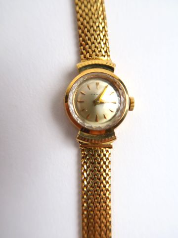 ZENITH. Montre de dame, cadran et bracelet en or. Poids tel : 24,8 g. Dans son écrin