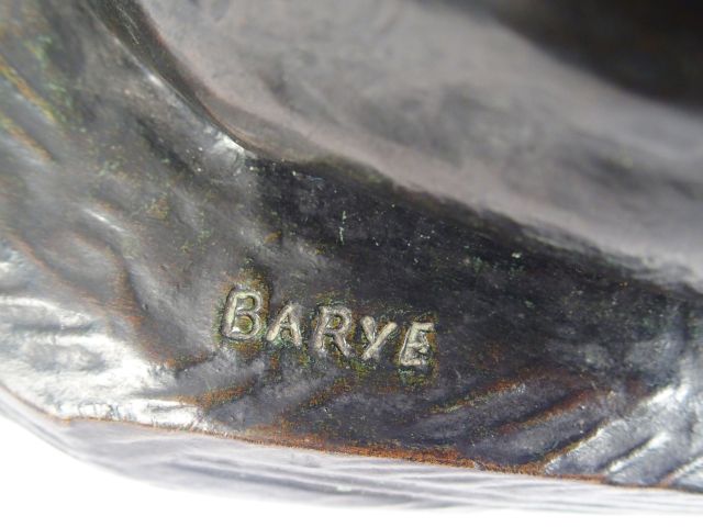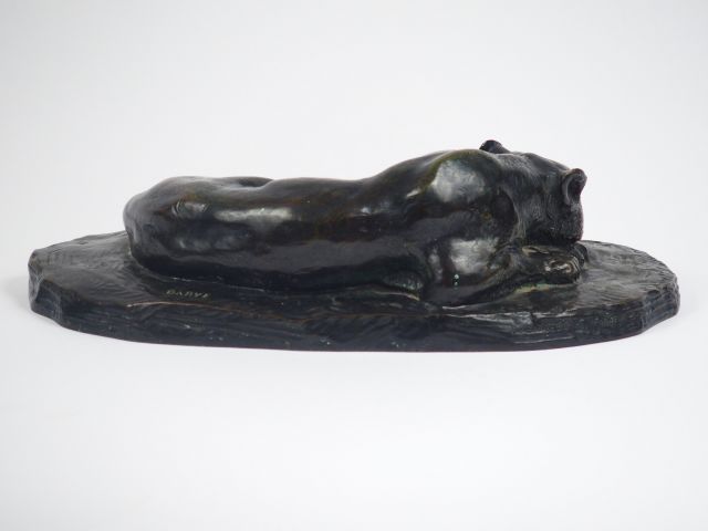 Antoine Louis BARYE. 'Jaguar dormant'. Bronze, fonte Barbedienne. Signé. Dim. : 30.5 x 16 x 9 cm. numéroté à l'encre sous la sculpture 60875ONE et estampé d'un B majuscule