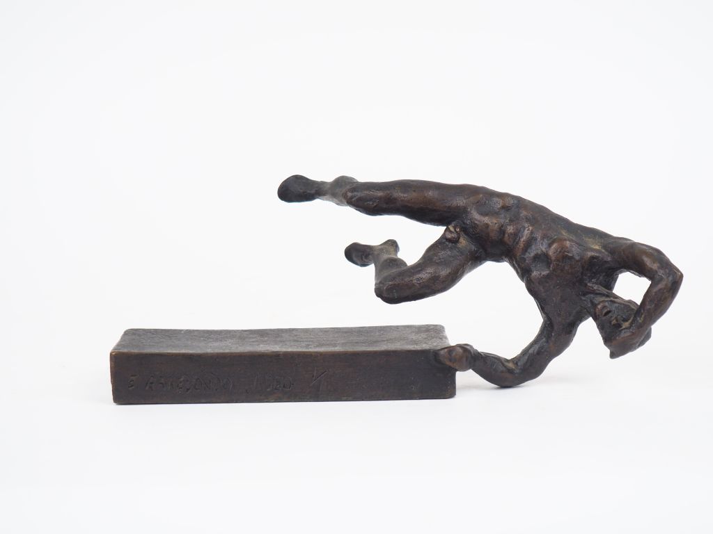 ARREDONDO. "la chute" Sujet en bronze à patine brune Signée 1/1 et datée 1980 Dim. 11 x 27 cm