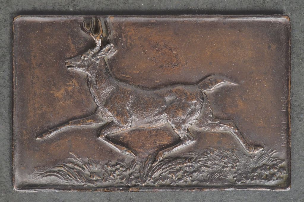 BARYE. "le cerf courant". Plaque en bronze signée et datée 1831. H. ...