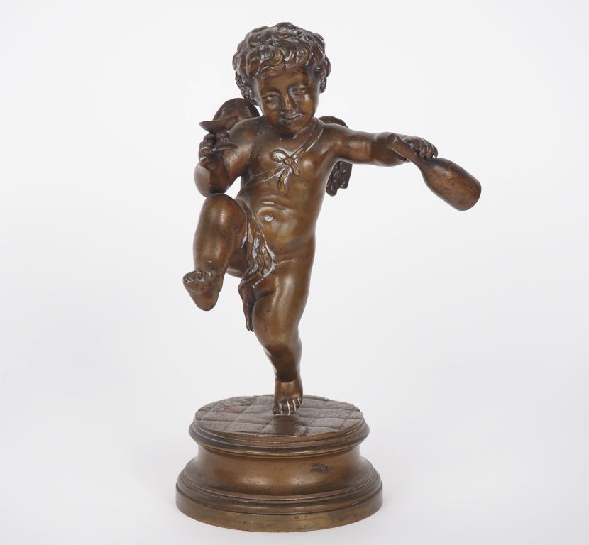 Lot de BISSON. "amour bacchique dansant" Sujet en bronze patiné Signé H. 18 au prix de 100 à 150 € en vente aux enchères par l'hôtel des ventes Primardeco