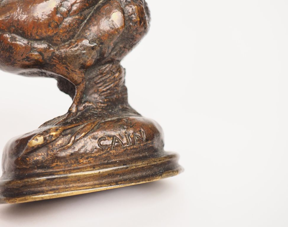 CAIN. "le coq" Sujet en bronze à patine médaille. H. 10 cm